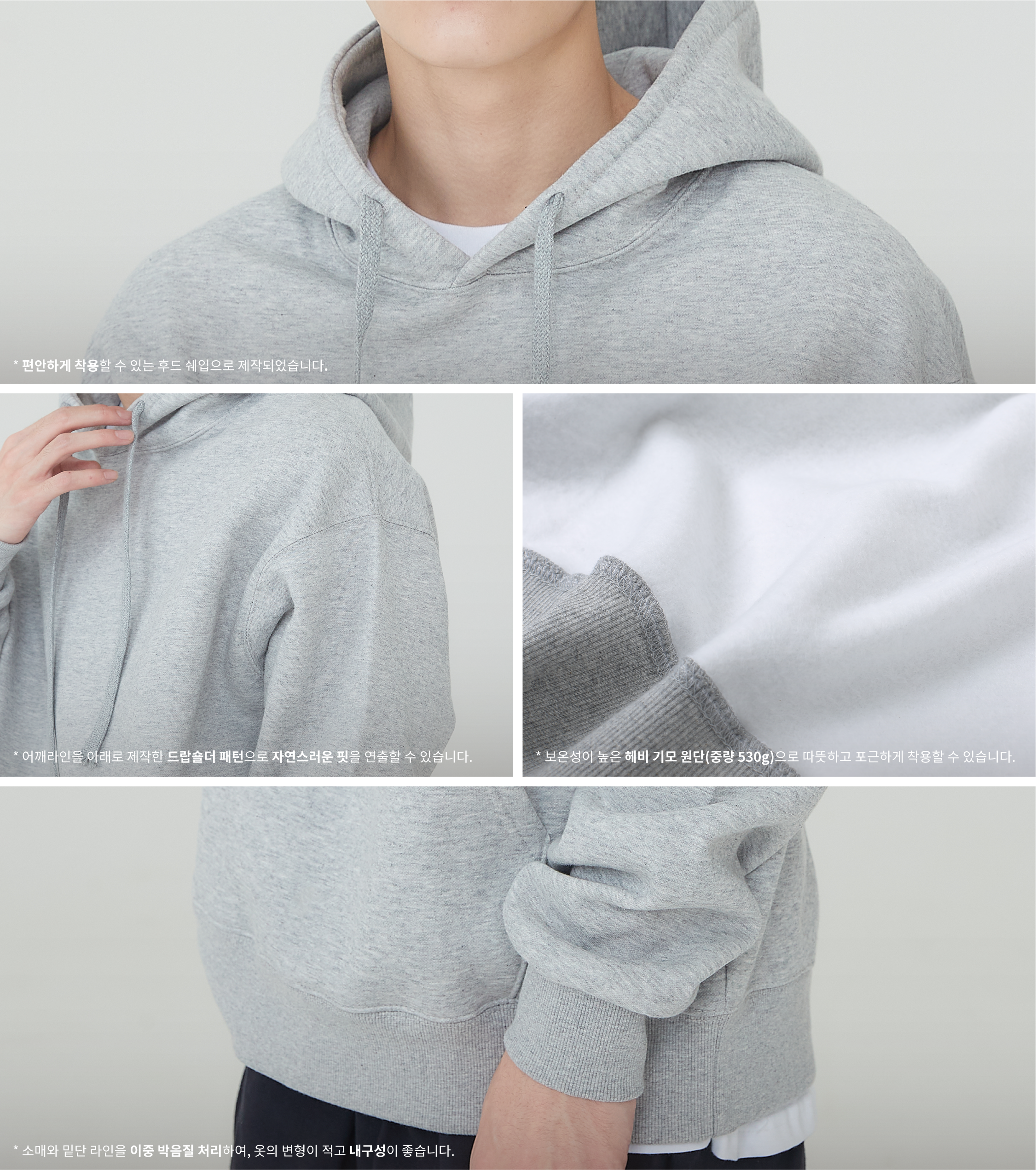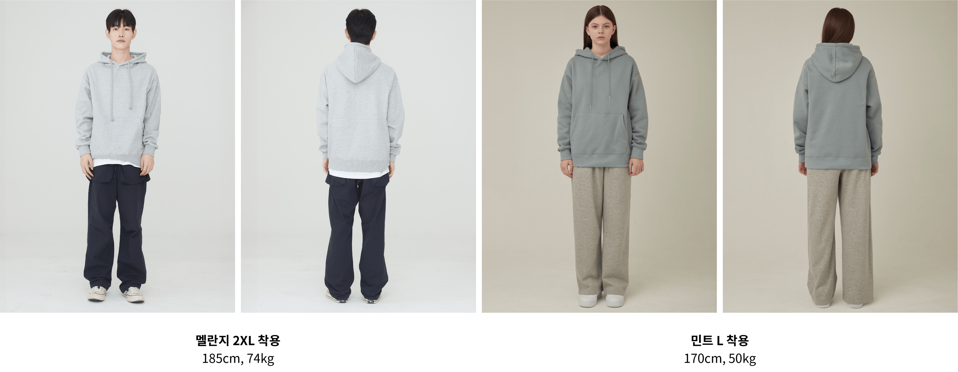 - 포근하고 따뜻한 착용감을 가진 필잇 시그니처 겨울 후드입니다. 국내에서 생산된 헤비 기모 원단 530g 중량으로 제작되어 탄탄하고 부드러워요. 어깨선이 아래로 내려와 루즈한 핏으로 자연스럽고 캐주얼하게 입을 수 있으며, 다양한 색상과 사이즈로 구성되어 있어요.