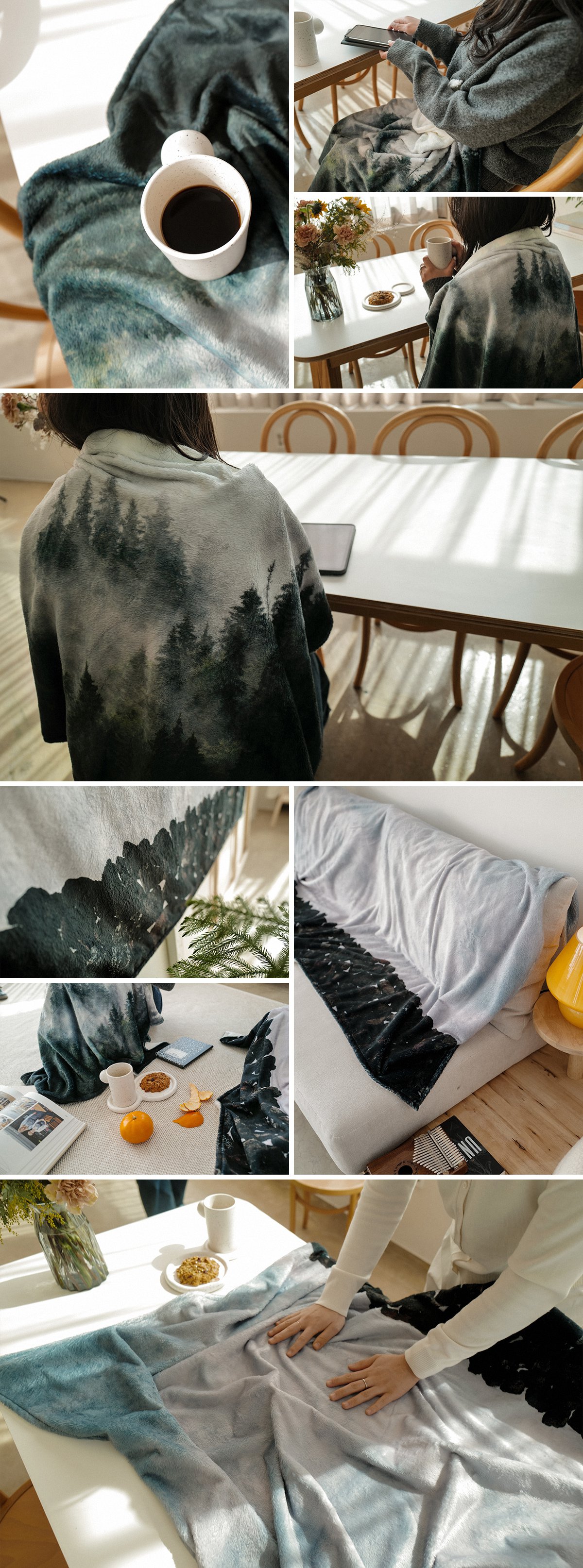 내가 좋아하는 풍경이나 일러스트를 더해 양모 담요를 커스텀해보세요. 어디든 쌀쌀한 곳에서 유용하게 활용될 아이템입니다.
