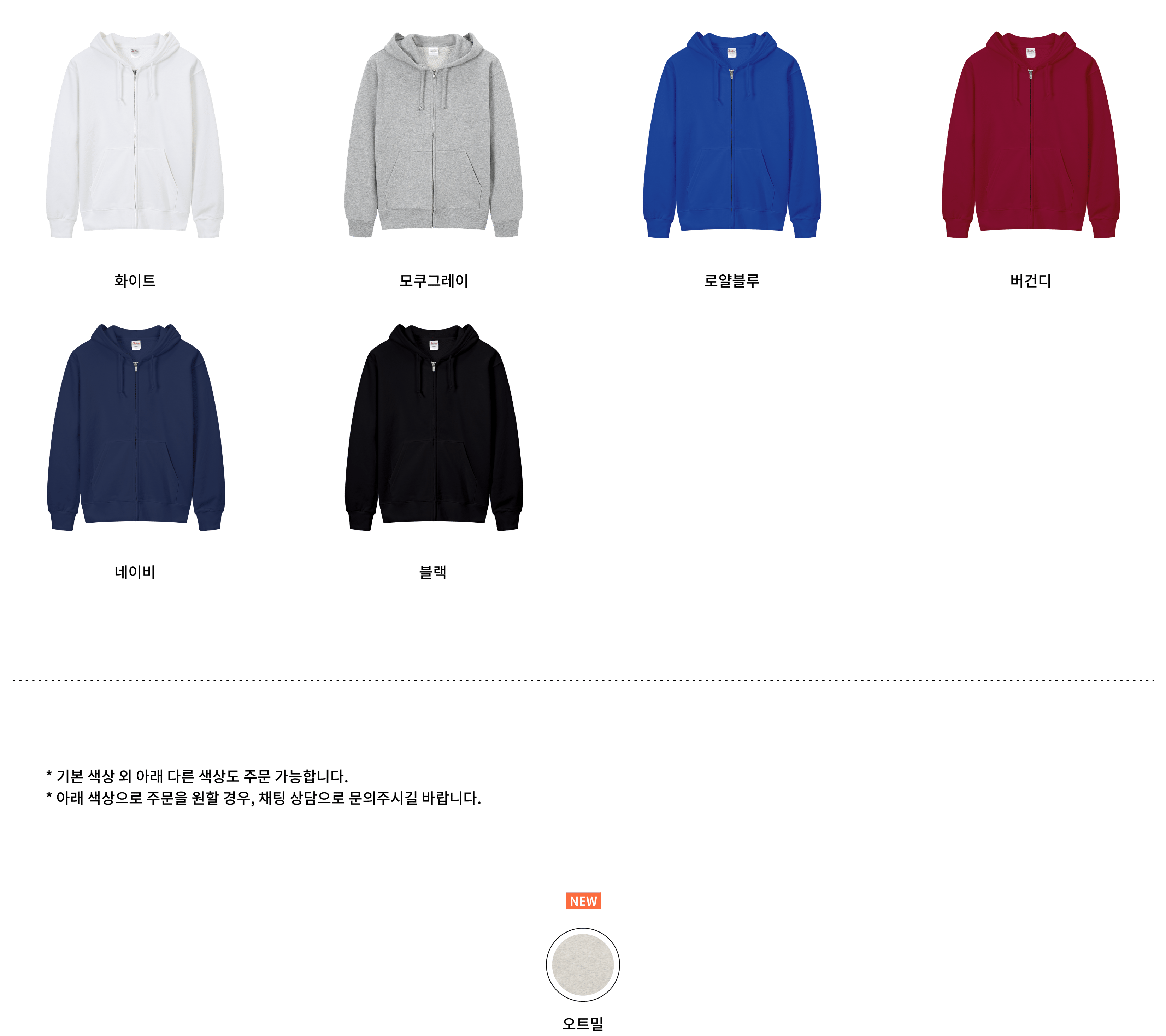 ・쭈리 원단: 부드러운 원단이 특징이며, 원단 뒷면이 작은 루프 형태로 짜여 있어 통기성이 높고, 내구성이 좋습니다. ・기모 원단: 원단 뒷면에 기모 공정을 하여, 부드럽고 도톰한 두께감을 만들어 따뜻하게 입을 수 있습니다.