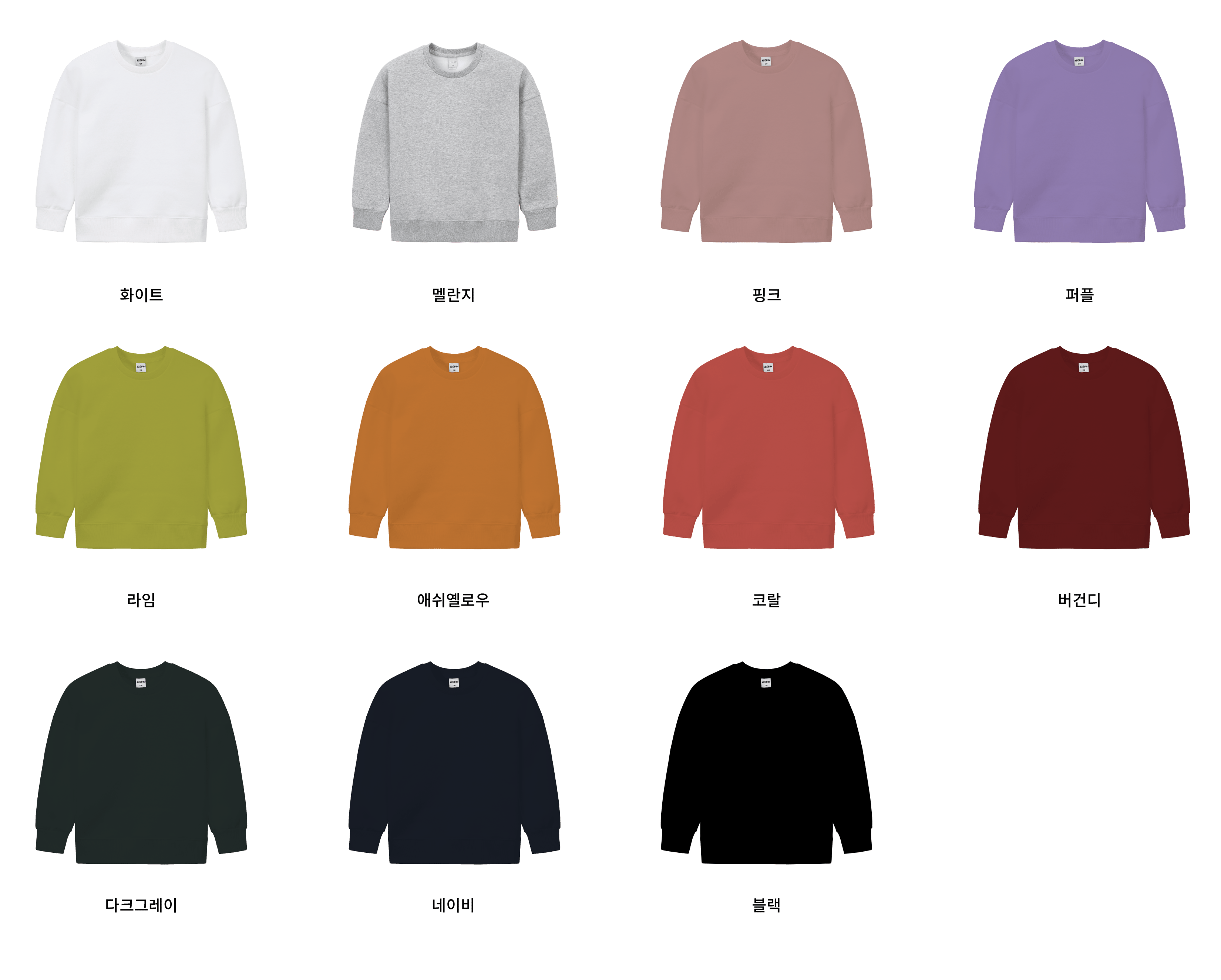 - 포근하고 따뜻한 착용감을 가진 필잇 시그니처 겨울 맨투맨입니다. 국내에서 생산된 헤비 기모 원단으로 탄탄하고 부드러워요. 어깨선이 아래로 내려와 루즈한 핏으로 자연스럽고 캐주얼하게 입을 수 있으며, 다양한 색상과 사이즈로 구성되어 있어요.