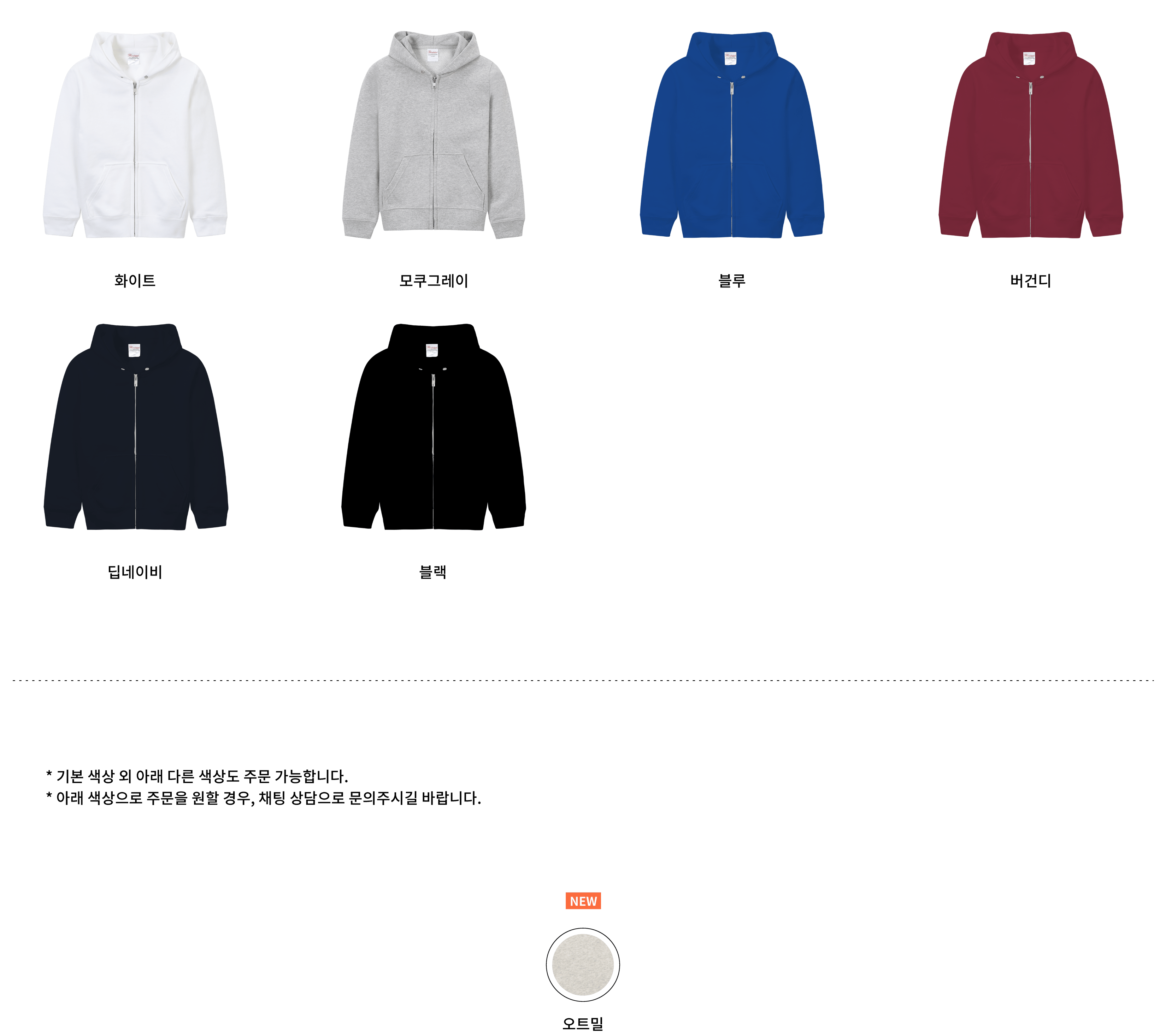 ・쭈리 원단: 부드러운 원단이 특징이며, 원단 뒷면이 작은 루프 형태로 짜여 있어 통기성이 높고, 내구성이 좋습니다. ・기모 원단: 원단 뒷면에 기모 공정을 하여, 부드럽고 도톰한 두께감을 만들어 따뜻하게 입을 수 있습니다.