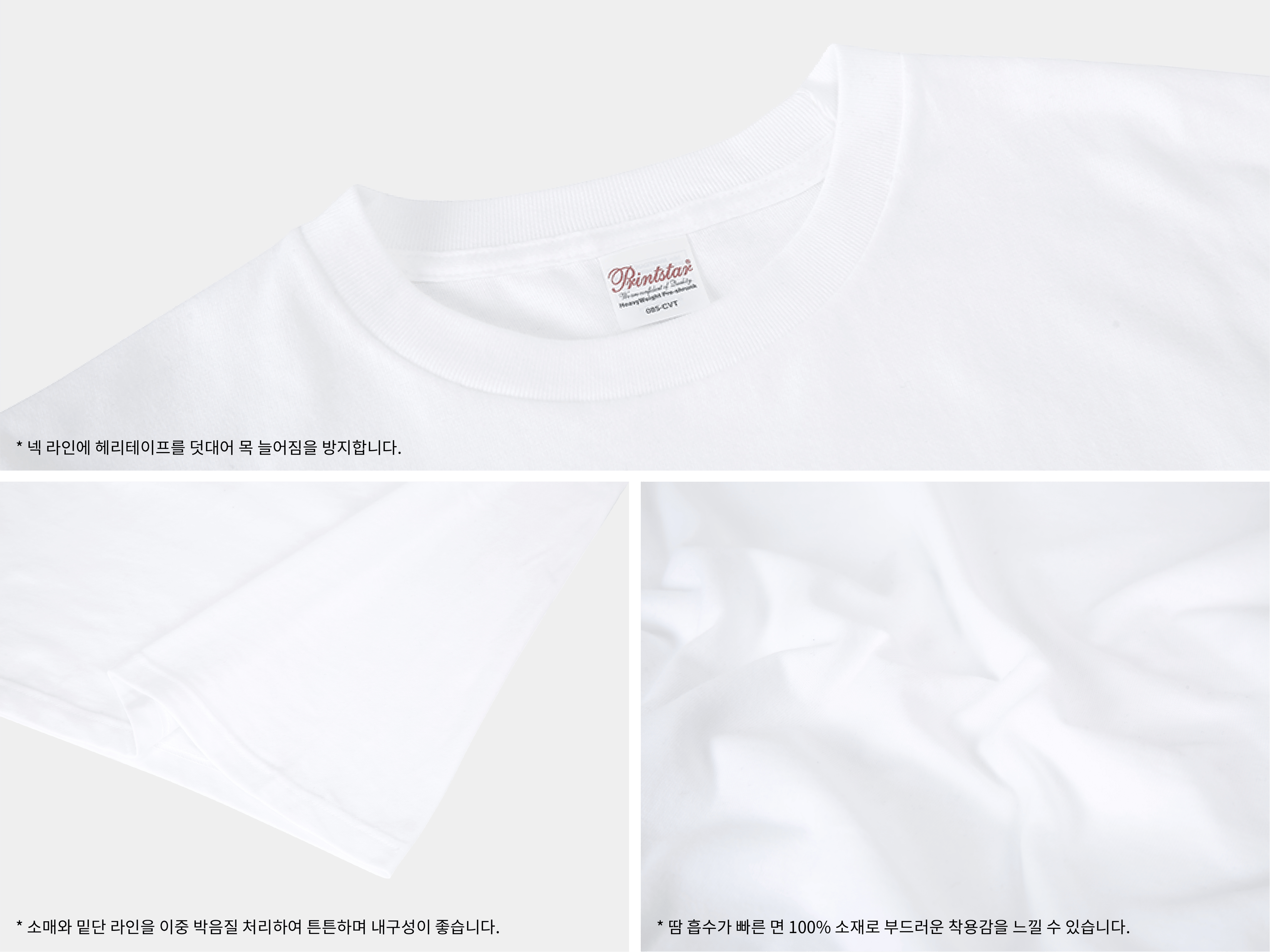 ・소재: 면 100% (모쿠그레이: 면 80%, 폴리에스터 20% / 애쉬: 면 95% 폴리에스터 5%) ・색상: 화이트, 모쿠그레이, 레드, 버건디, 라이트핑크, 라이트블루, 라이트옐로우, 라이트퍼플, 데이지, 그린, 로얄블루, 퍼플, 차콜, 네이비, 블랙 ・사이즈: 110, 120, 130, 140, 150, 160 ・브랜드: 프린트스타(Printstar) ・제조국: 중국, 베트남