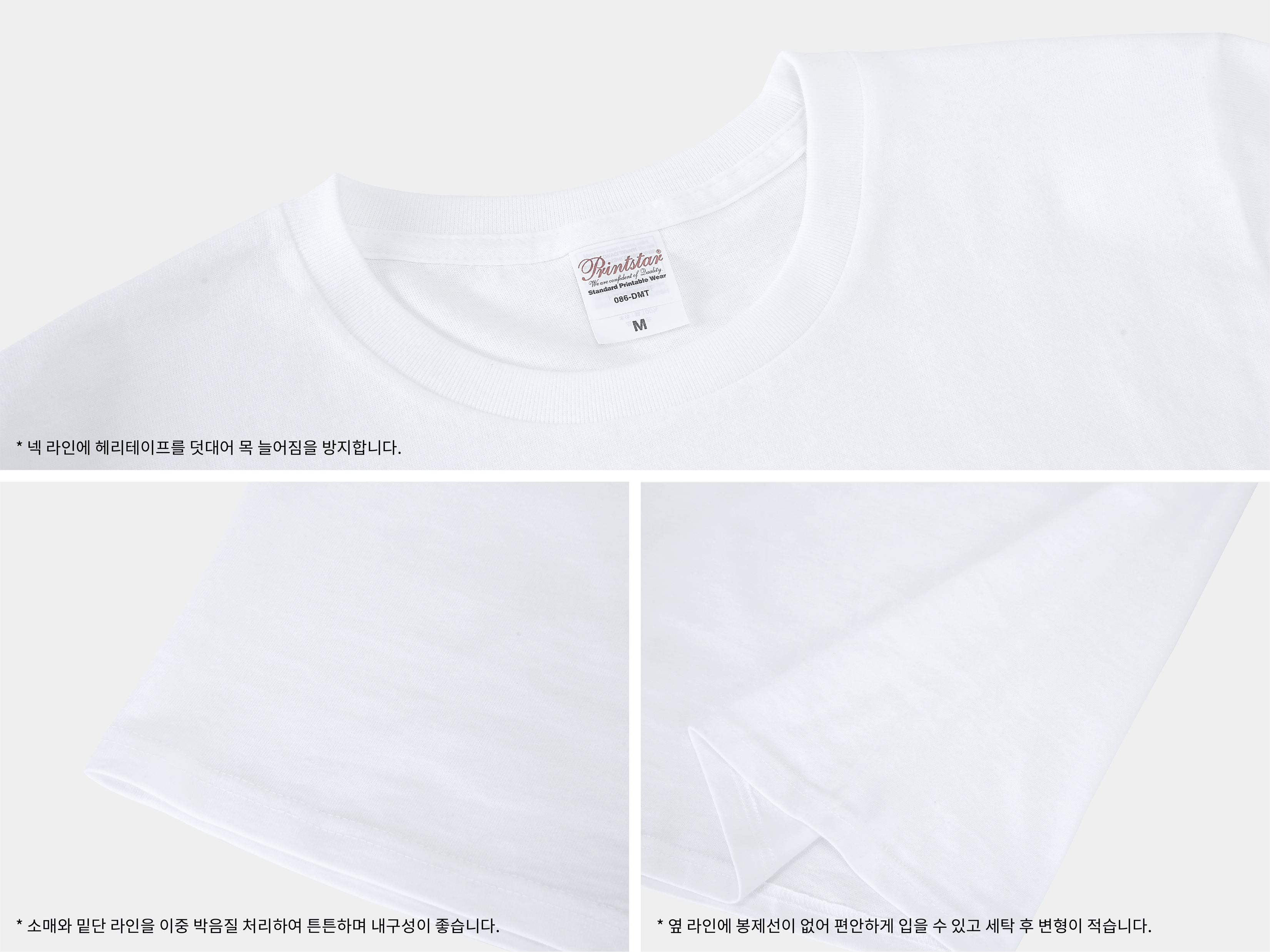 ・본체 소재: 면 100% (모쿠그레이: 면 90%, 레이온 10%) ・리브 소재: 면 96%, 폴리에스터 4% (모쿠그레이: 면 87%, 레이온 9%, 폴리에스터 4%) ・색상: 화이트, 모쿠그레이, 레드, 버건디, 라이트핑크, 라이트블루, 라이트그린, 옐로우, 퍼플, 로얄블루, 아미그린, 차콜, 네이비, 블랙 ・사이즈: 110, 120, 130, 140, 150, 160 ・브랜드: 프린트스타(Printstar) ・제조국: 중국, 베트남