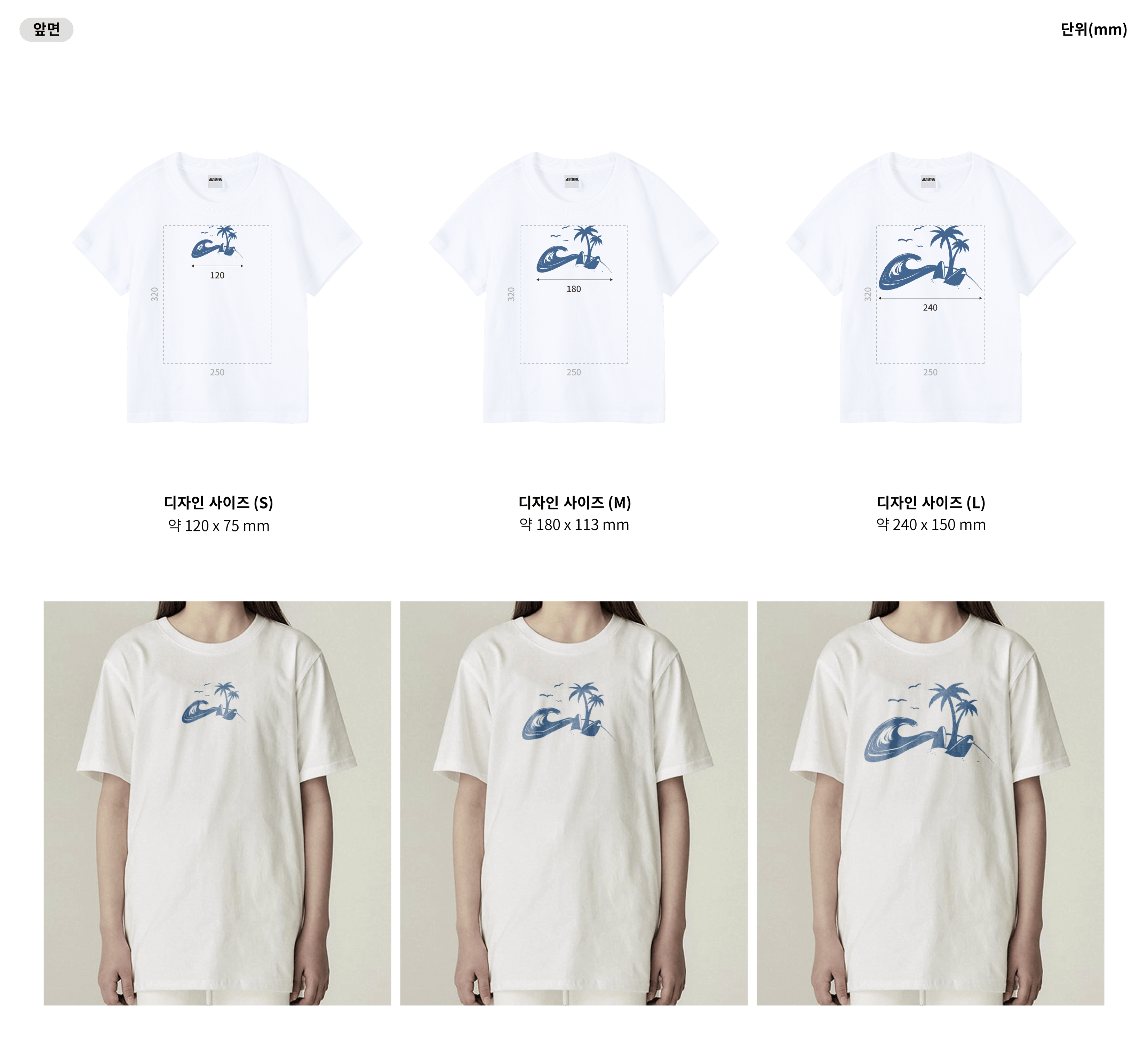 인쇄 영역의 디자인 사이즈별 시안을 비교해 보세요.