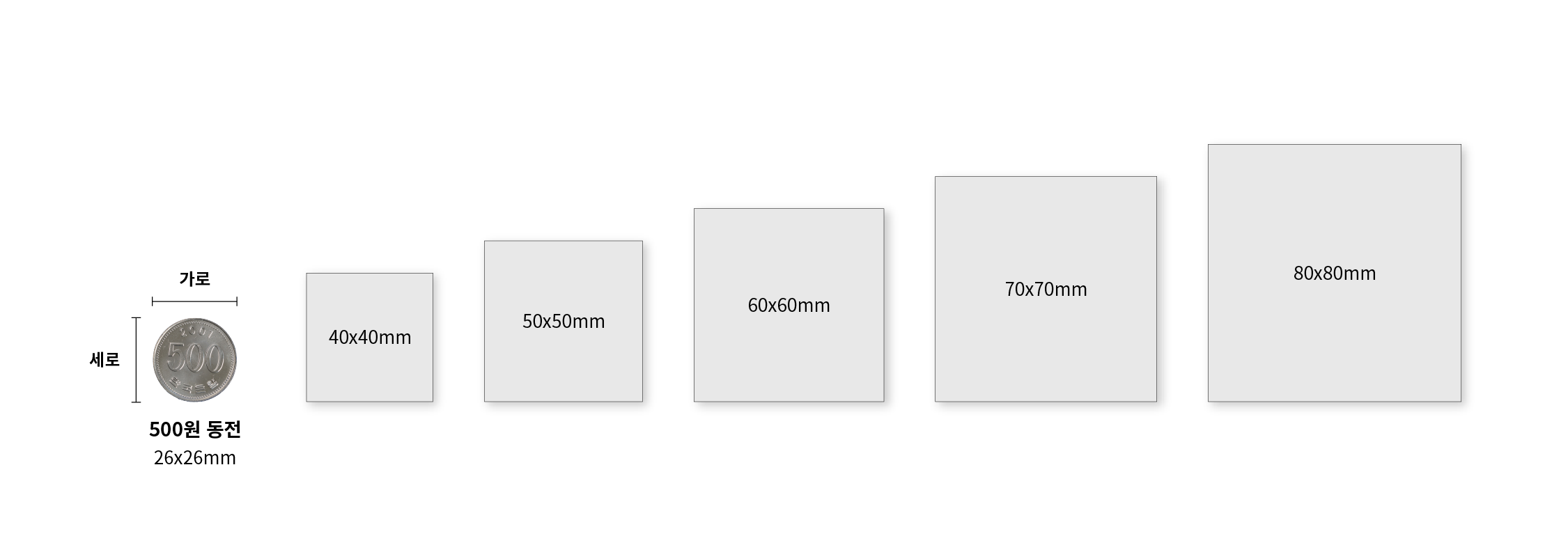 ・소재: 유광 코팅 아트지, 무광 코팅 아트지, 일반 아트지(무코팅) ・사이즈: 40x40mm, 50x50mm, 60x60mm, 70x70mm, 80x80mm ・매수: 100매