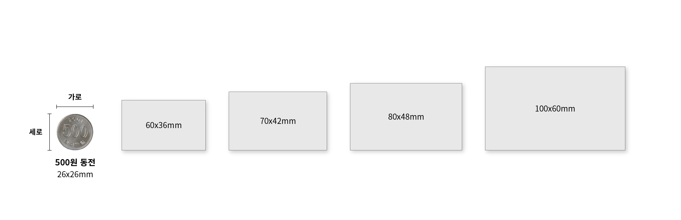 ・소재: 유광 코팅 아트지, 무광 코팅 아트지, 일반 아트지(무코팅) ・사이즈: 60x36mm, 70x42mm, 80x48mm, 100x60mm ・매수: 100매