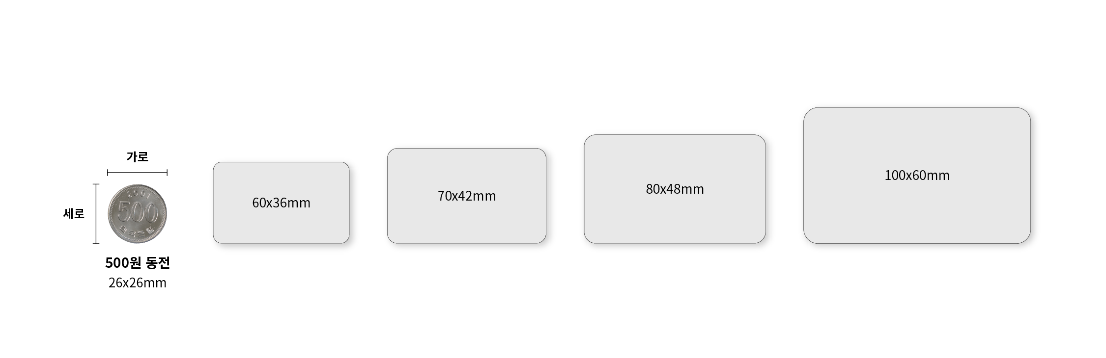 ・소재: 유광 코팅 아트지, 무광 코팅 아트지, 일반 아트지(무코팅) ・사이즈: 60x36mm, 70x42mm, 80x48mm, 100x60mm ・매수: 100매