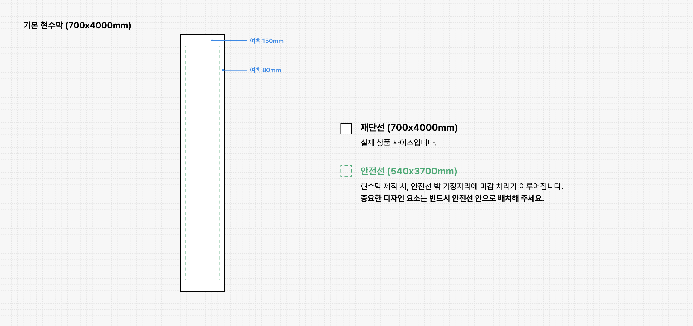 ・안전선: 글씨나 이미지가 잘려 나가지 않는 최소한의 안전 영역으로, 중요한 디자인 요소는 반드시 안전선 안으로 배치해 주세요. ・안전선 밖으로 디자인할 경우, 재단 오차 및 마감 작업에 의해 잘려 나갈 수 있습니다. ・해당 유의사항을 확인하지 않고 발생하는 디자인 실수에 대해서는 재작업 및 반품이 불가합니다.