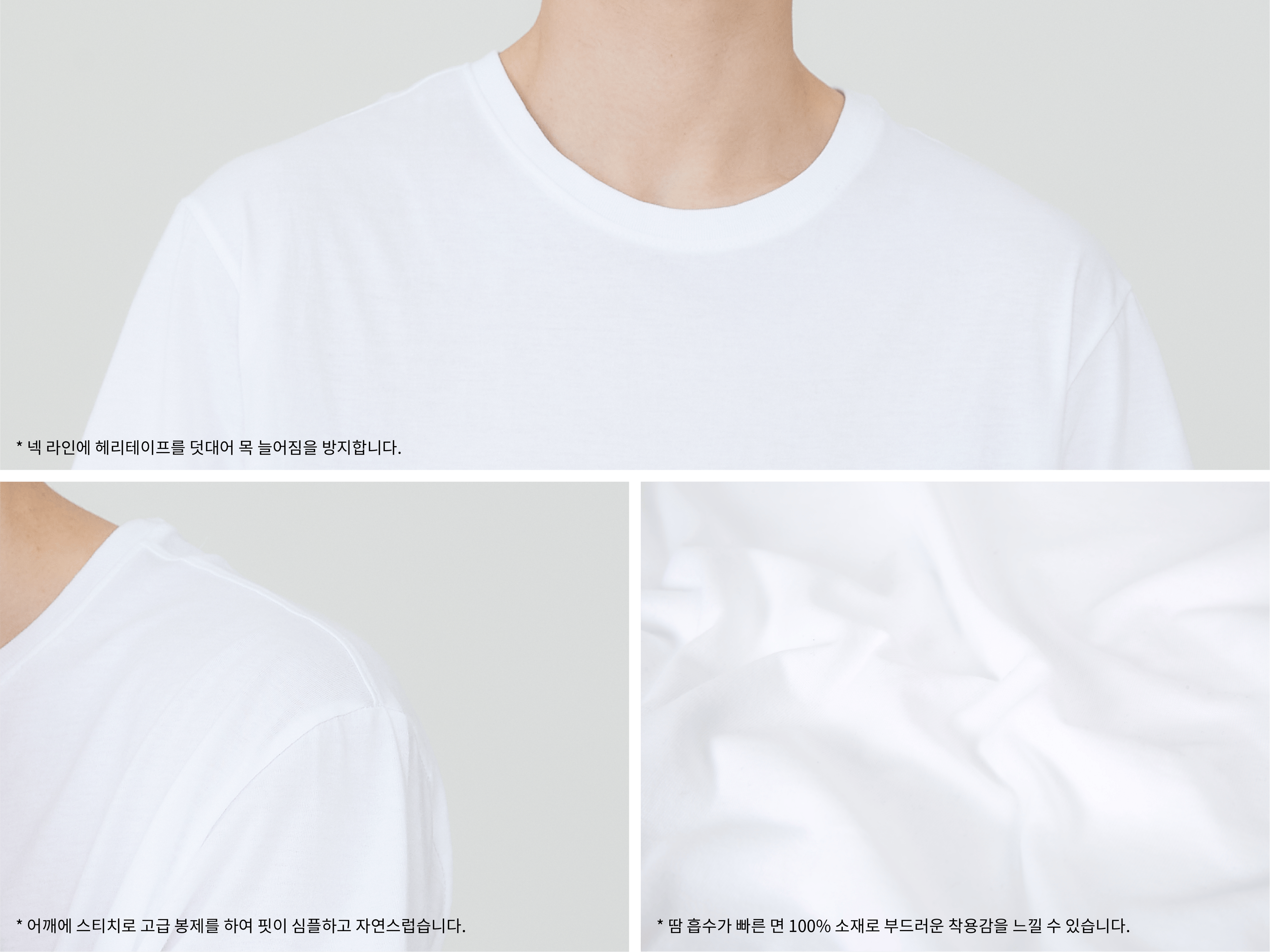 ・원사의 숫자가 낮을수록 실의 굵기가 굵어지며, 두꺼운 원단으로 무게감이 느껴집니다. ・14수 원단 (비침 없음): 도톰한 두께로 적당한 무게감이 있고 탄탄한 원단으로 내구성이 좋습니다. ・20수 원단 (비침 약간 있음): 얇은 원단으로 약간의 비침이 있고 통기성이 좋아 시원하게 착용할 수 있습니다.