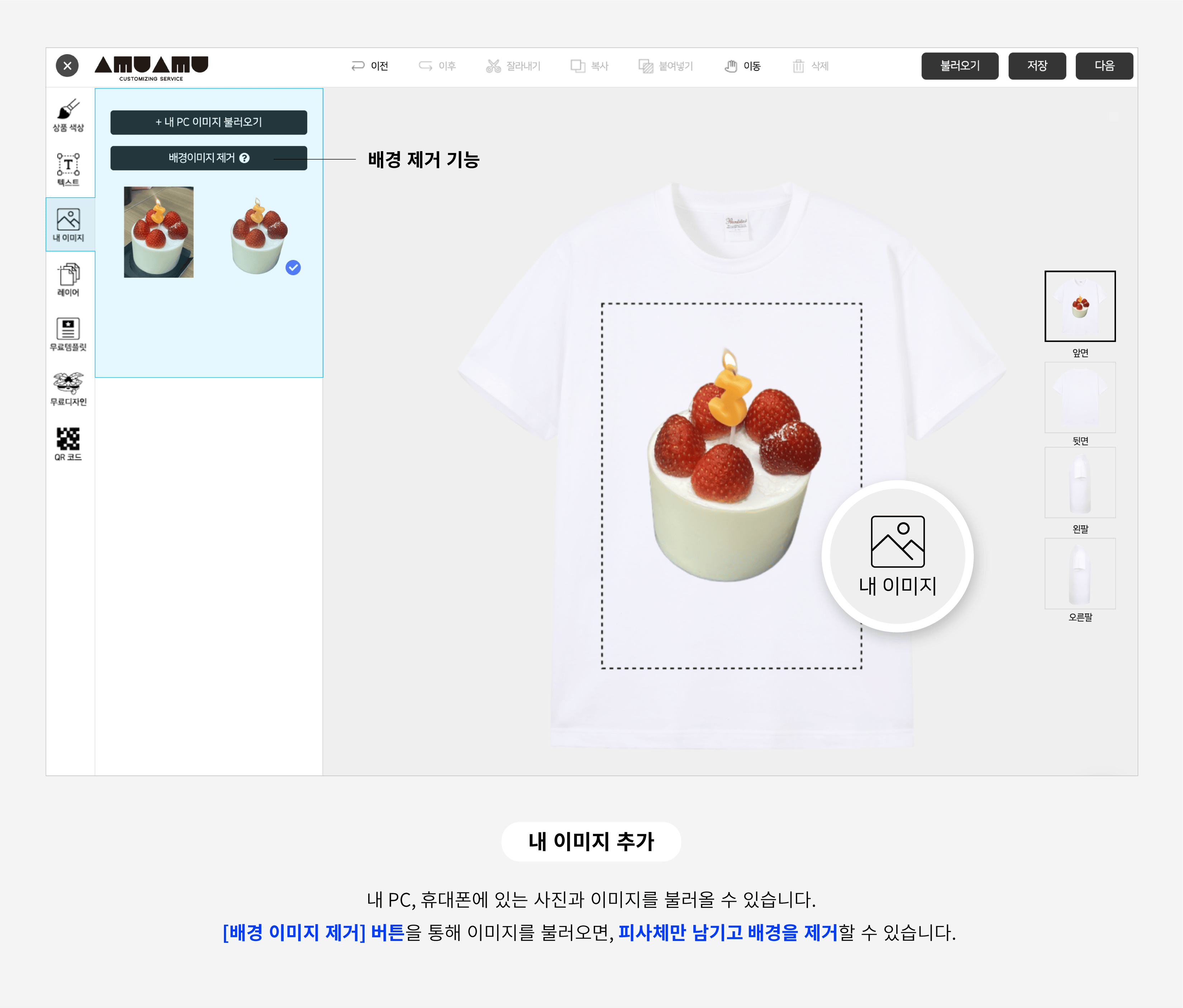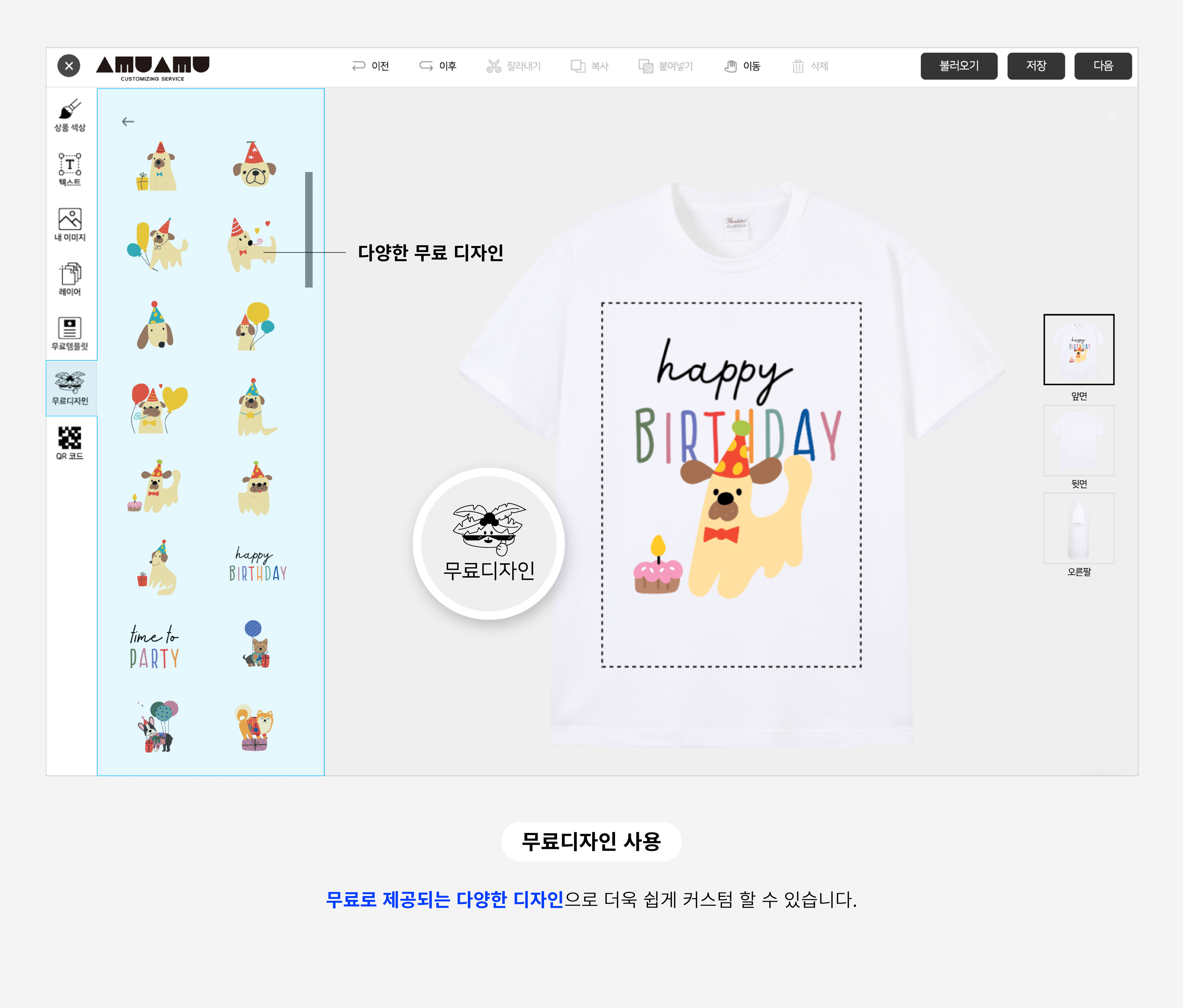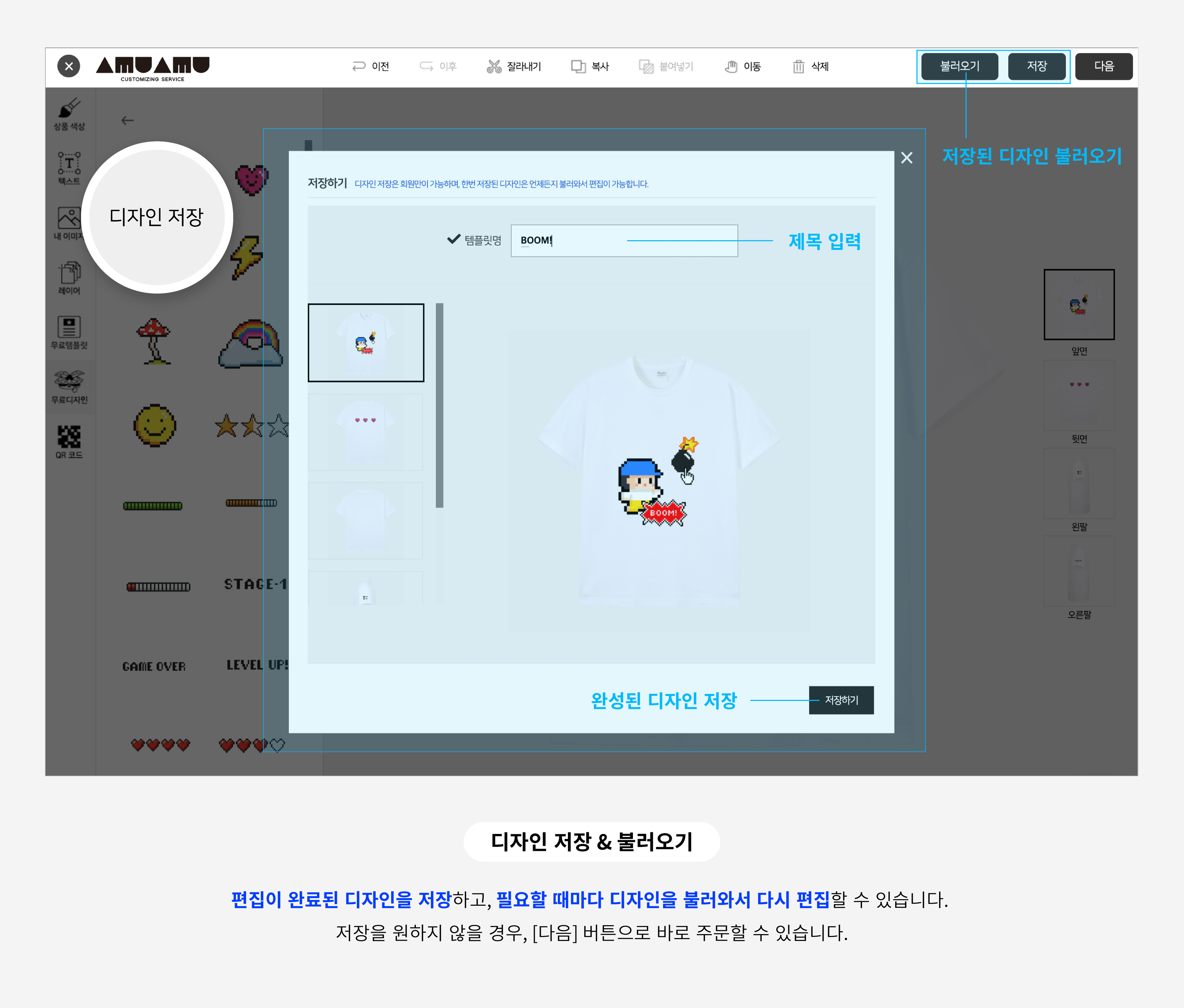 복잡한 디자인 프로그램을 따로 설치할 필요 없어요. 간편 에디터로 언제 어디서든 편하고 쉽게 디자인할 수 있어요.