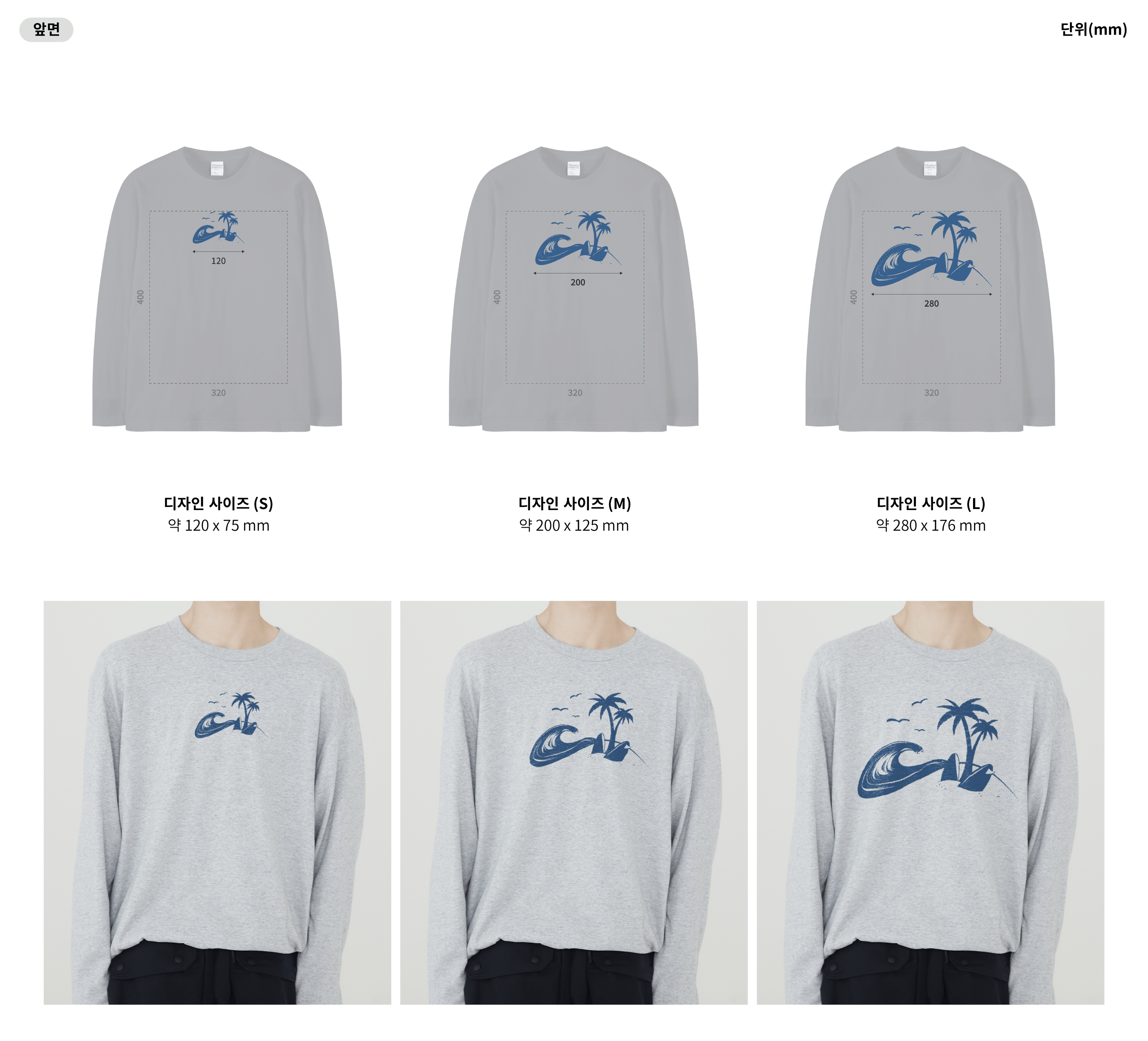 인쇄 영역의 디자인 사이즈별 시안을 비교해 보세요.