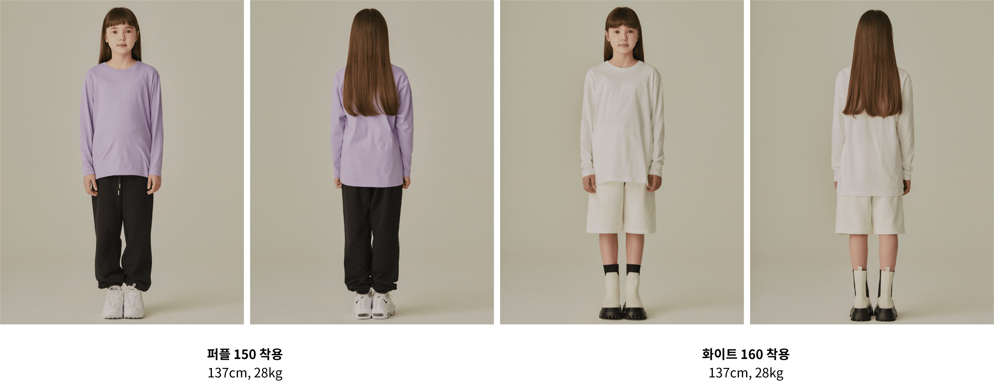 ・소재: 면 100% ・색상: 화이트, 크림, 샌드, 핑크, 퍼플, 코발트, 카멜, 포레스트그린, 다크그레이, 카키, 차콜, 네이비, 블랙 ・사이즈: 120, 130, 140, 150, 160 ・모델: 137cm, 28kg / 퍼플 150, 화이트 160 착용 ・브랜드: 필잇(Fillit) ・제조국: Made in Korea