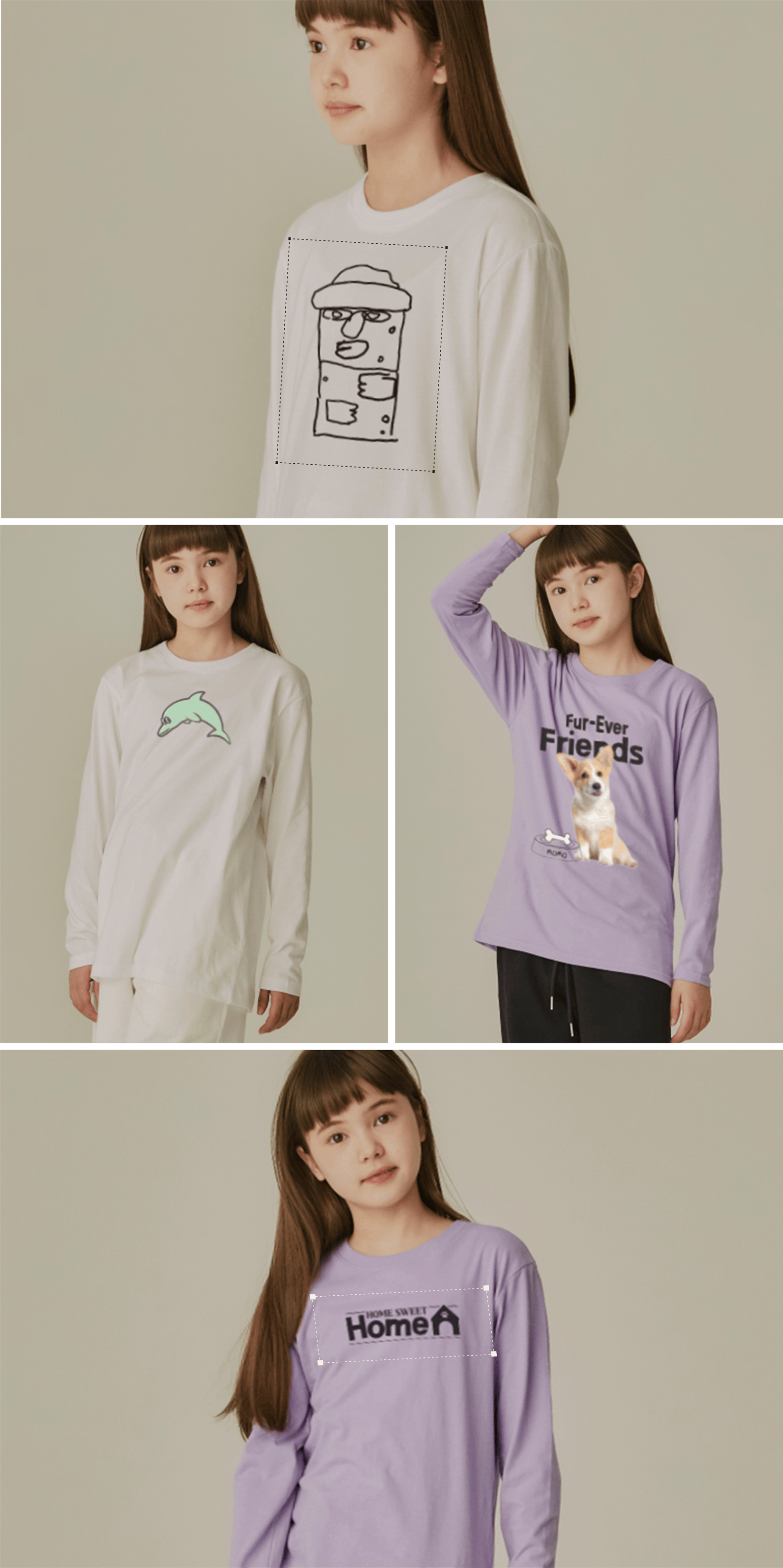 ・DTF(Direct To Film): 특수 인쇄 필름을 활용하여 핫멜트 파우더 처리 및 열프레스 작업을 통해 인쇄되는 방식입니다. ・제작 공정상 열이 가해진 필름 자국이 남아 있을 수 있으며, 1~2회 세탁 시 필름 자국은 사라집니다.