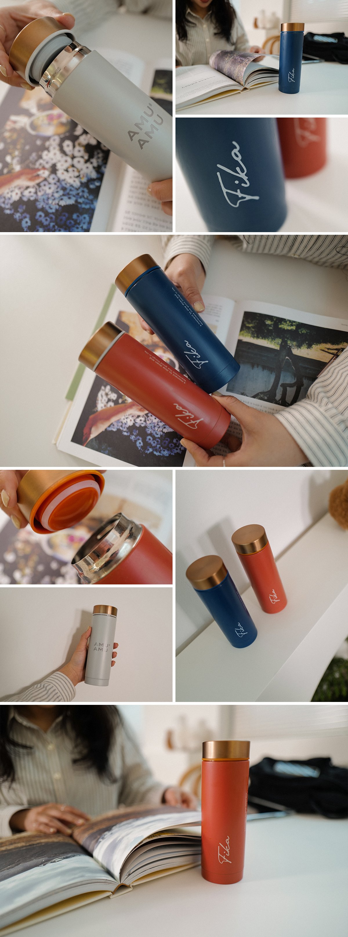 가볍게 휴대할 수 있는 용량으로 따뜻한 티나 커피를 담아 사용하기 좋은 컬러 스텐 텀블러. 뜨거운 물을 담아도 밖으로 열기가 새지 않아 만져도 뜨겁지 않아요.